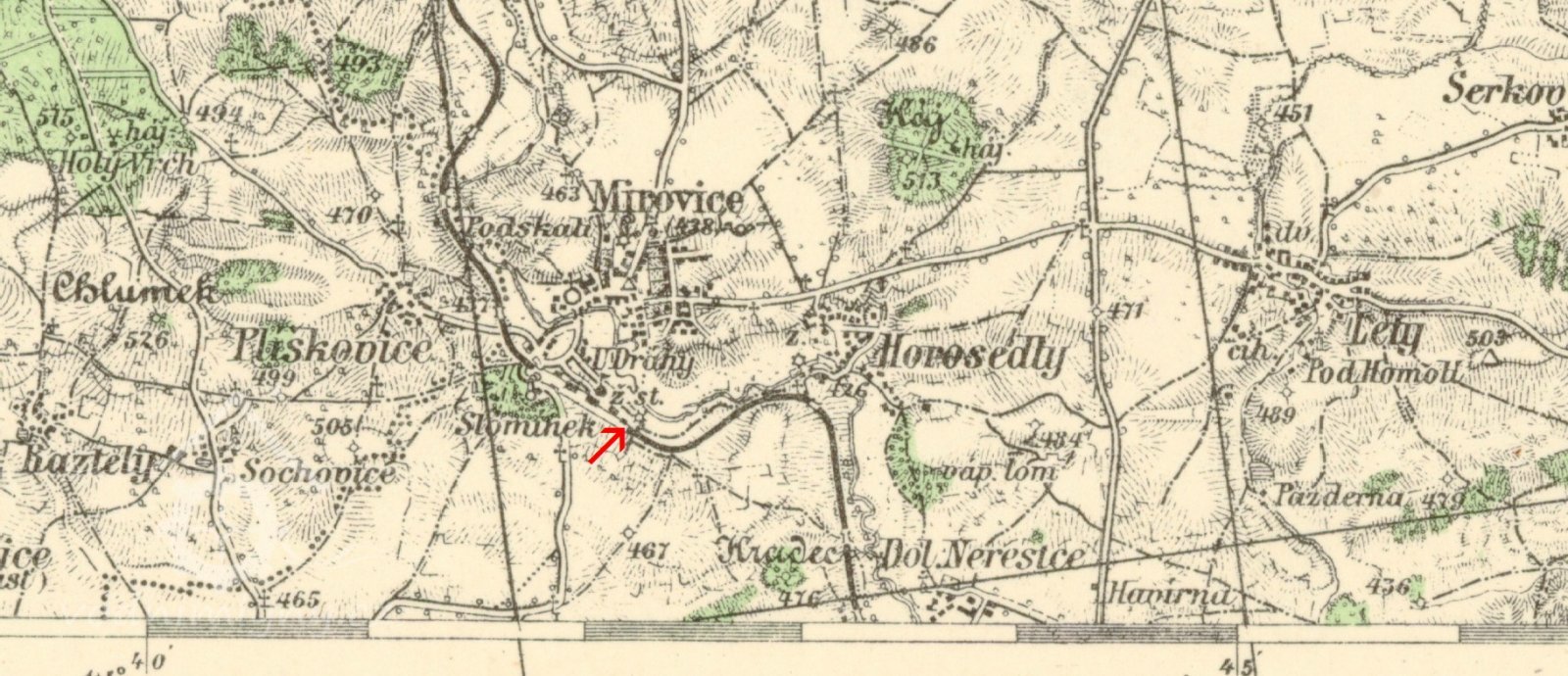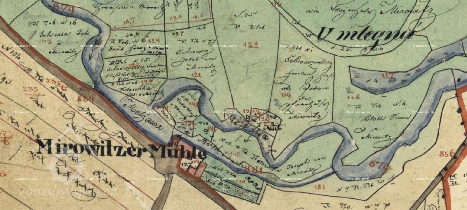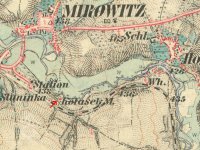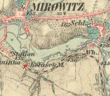 (přejal) "... mlejn na stálej vodě v Mirovicích ležící s trojím složením, 3 stoupami, s vodotečí a stavidlama i s mlejnskými žlaby, s 2 kousky lučního po obou stranách potoka ležícíma, s 1 kusem pole podle silnice k Březnici vedle louky plíškovického sedláka Bidly a Košty v ceně 1300 zl. Mimo to ujal i pole pod Hradcem v ceně 700 zl..."