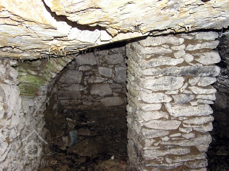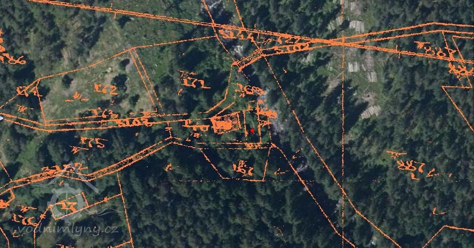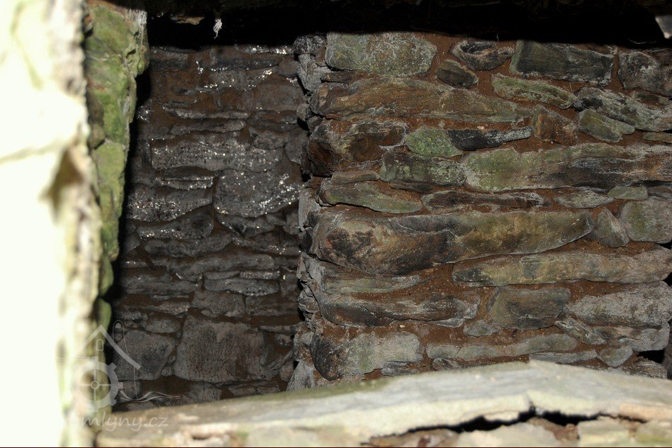 Vodní kolo,které roztáčel náhon z Mlýnského potoka,bylo umístěné při zadním štítu dolejšího (obytného) objektu.