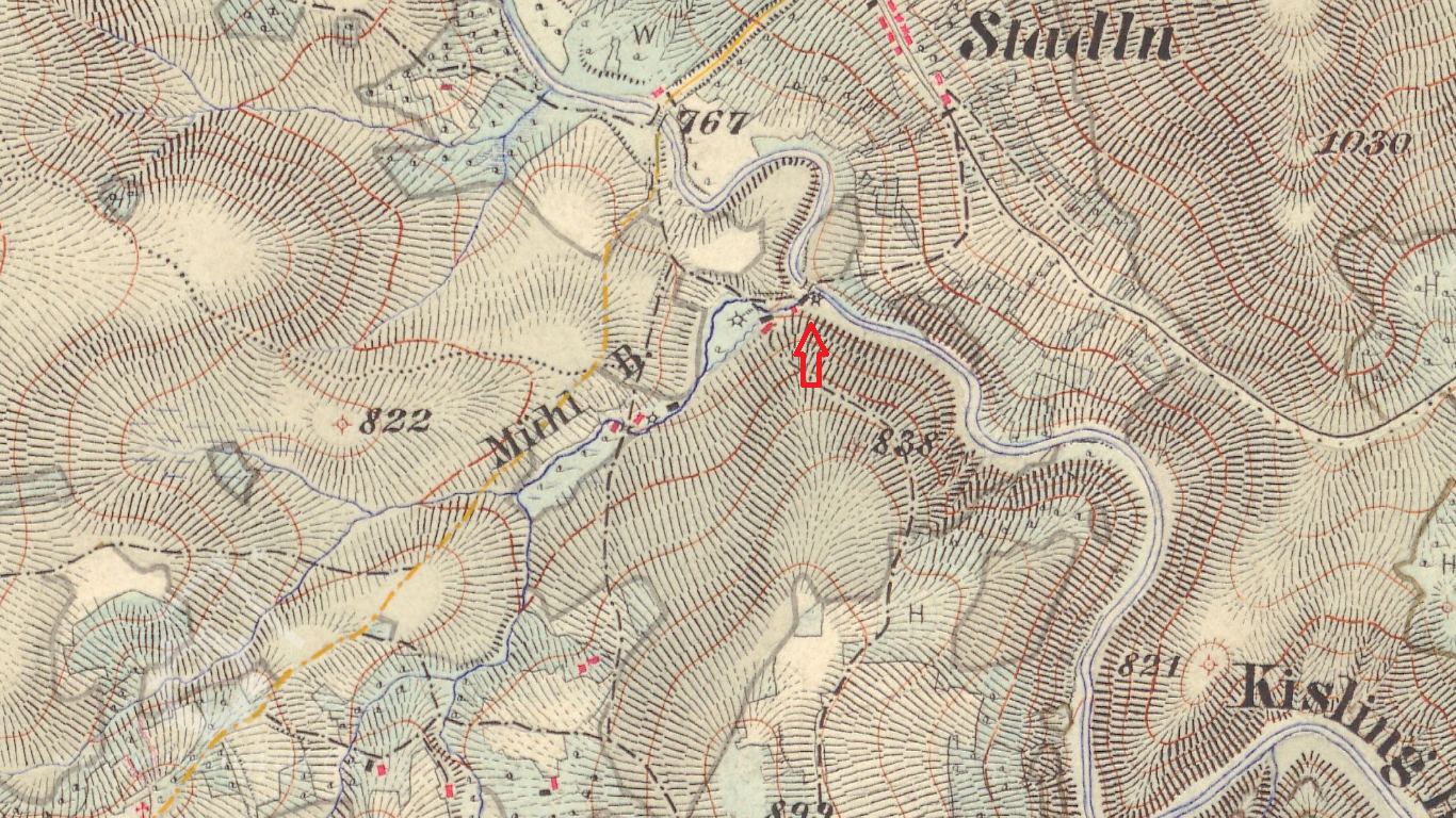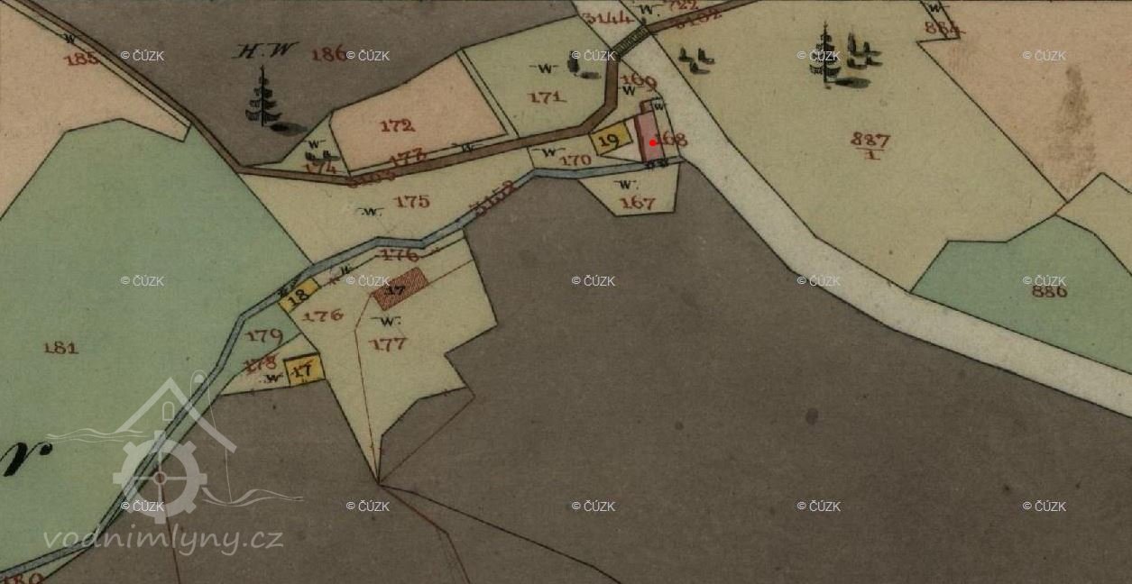 Mlýn je zachycen již na mapě I. voj. mapování.