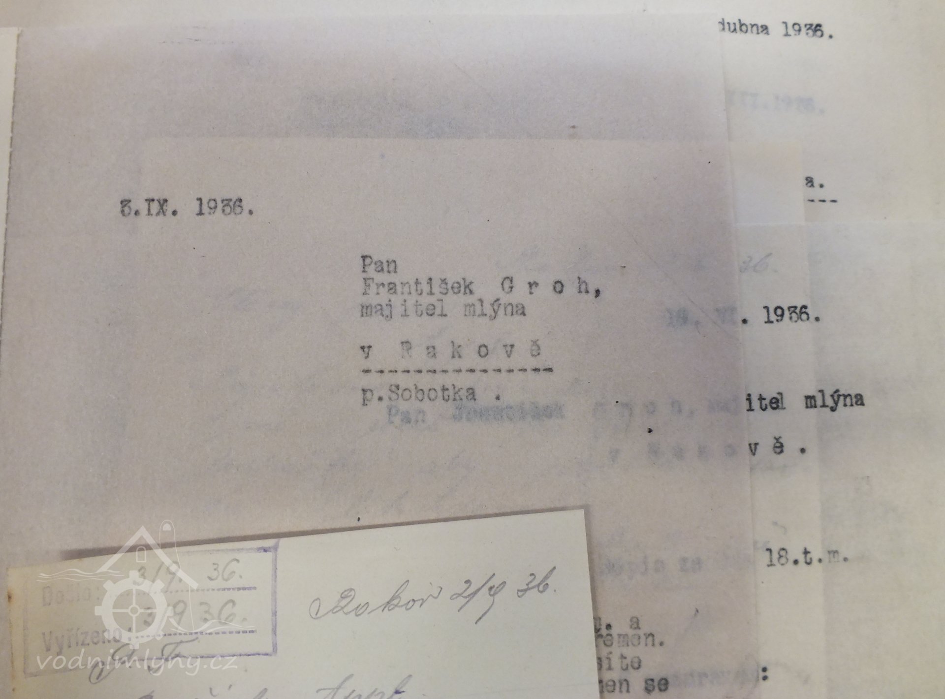 V roced 1930 byl majitelem mlýna František Groh, potok se nazýval Lipovec.