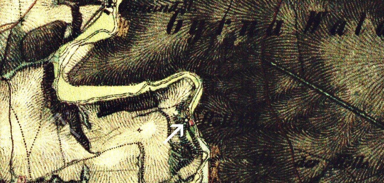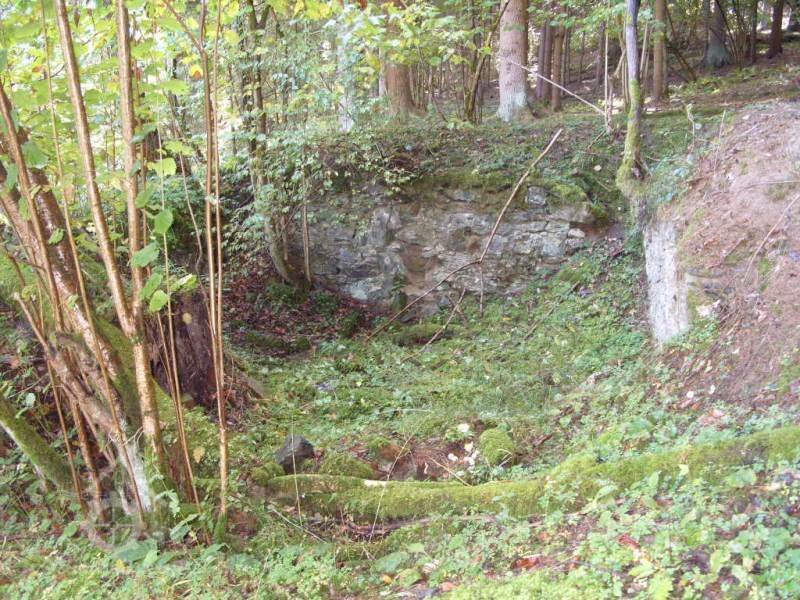 Za náhonem při cestě sklípek vytesaný do skály (údajně zbytek staršího hornického díla), vstupní část vyzděná klenutá .
