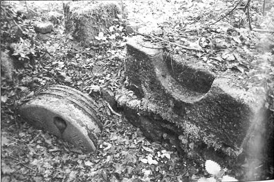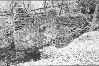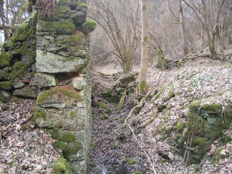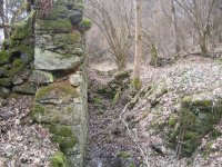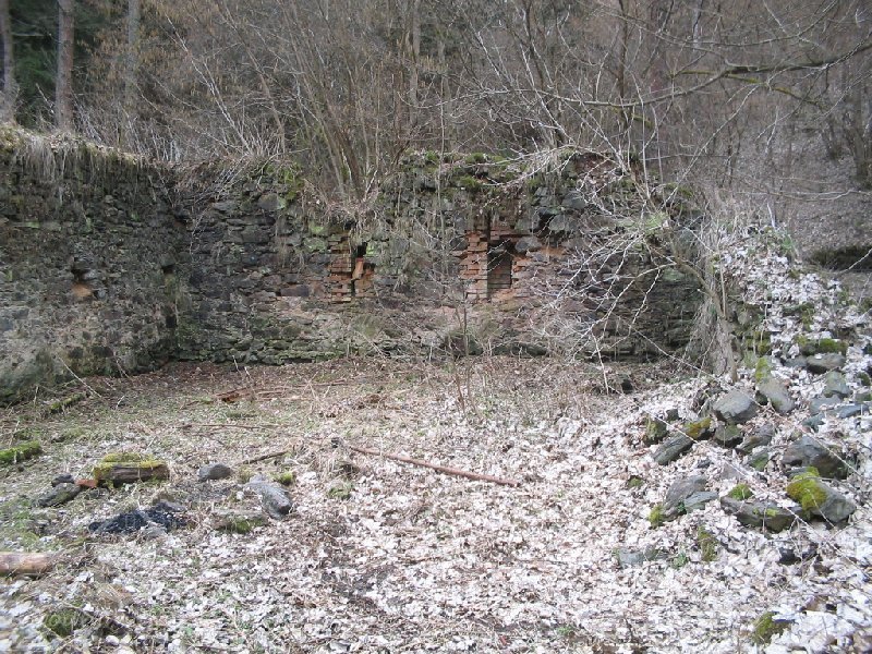 Rozvaliny bývalého mlýna se zbytky obvodových zdí.