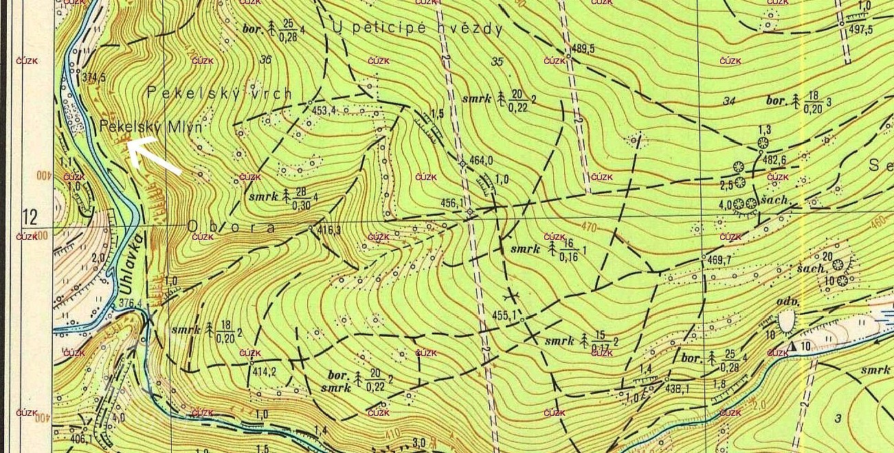 začátek 18. stol - název Pekelský mlýn , Höllmühle (HŠ)