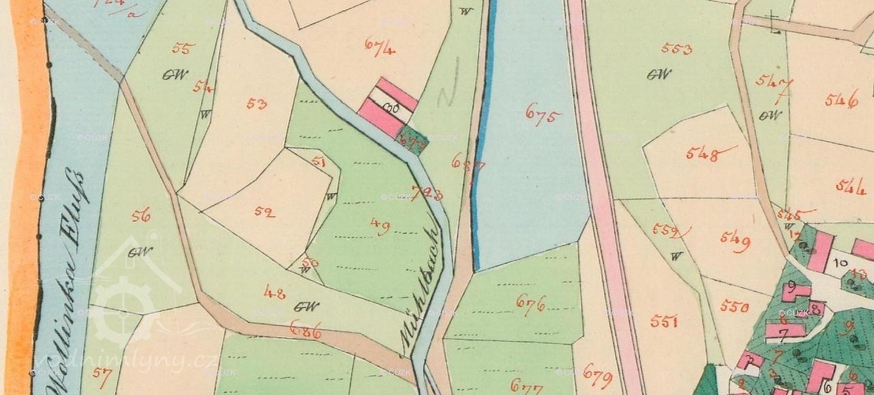 PopisV roce 1930 měl mlýn 1 turbínu Francis, průtok 1.05 m3/s, spád 1.7 m, výkon 12 HP (LR)