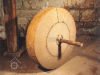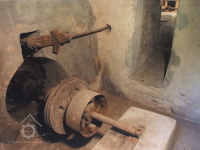 téměř veškeré zařízení odstraněno, zachován pouze zbytek trámové konstrukce válcové podlahy v přízemí, transmise v podkolí a volný konec turbíny