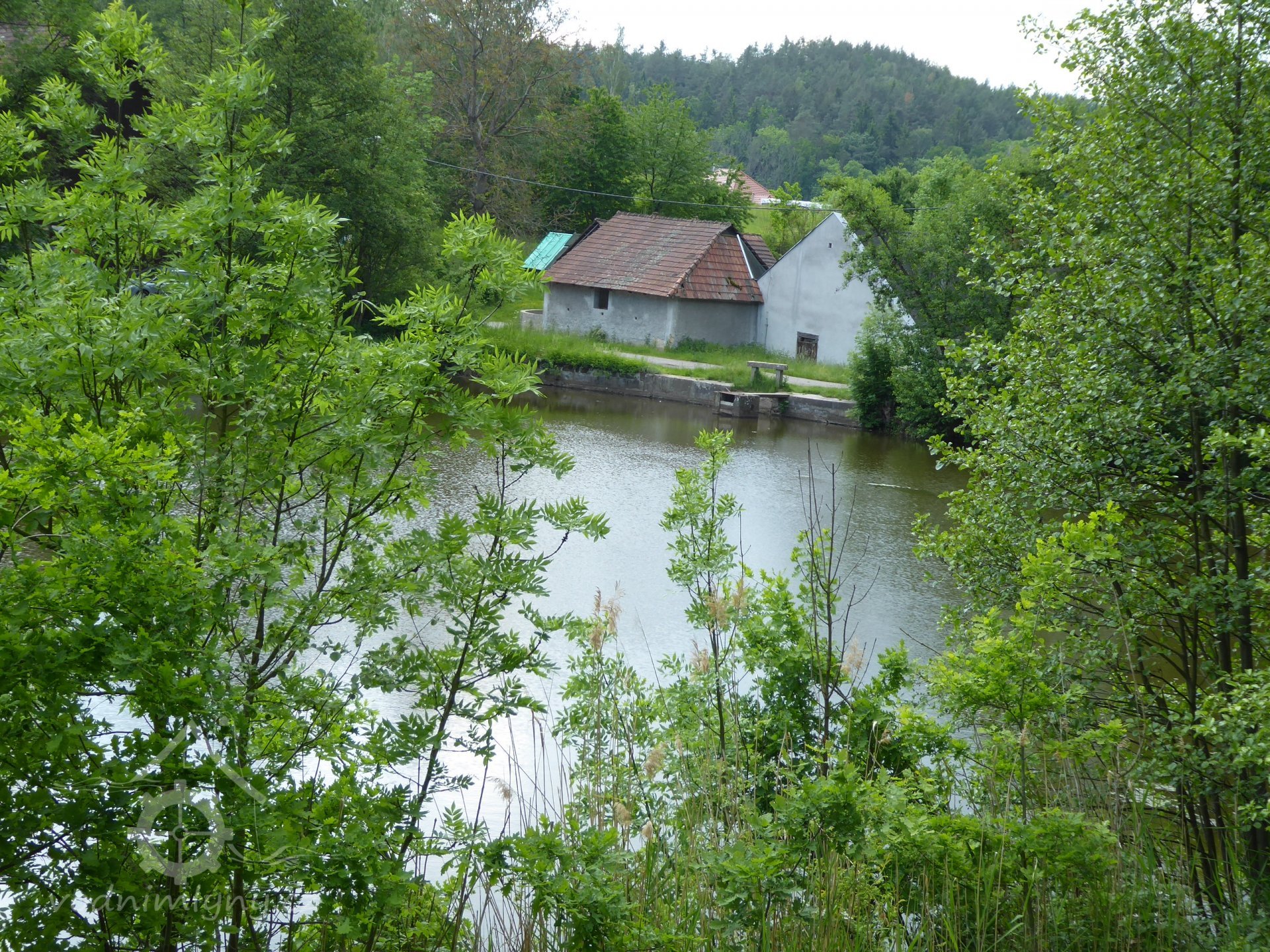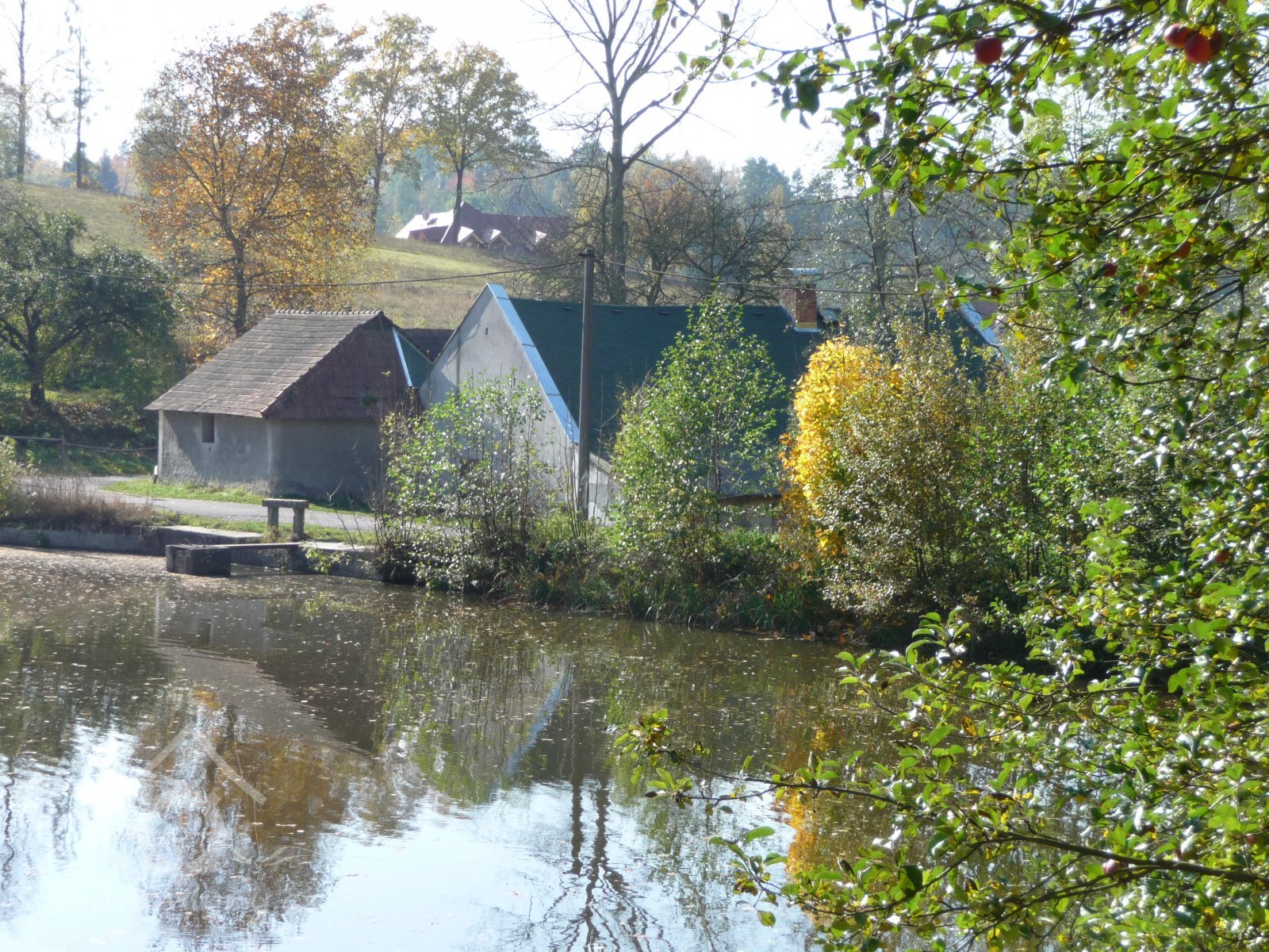 Na okraji obce, nedaleko mlýna chatová osada nad rybníkem