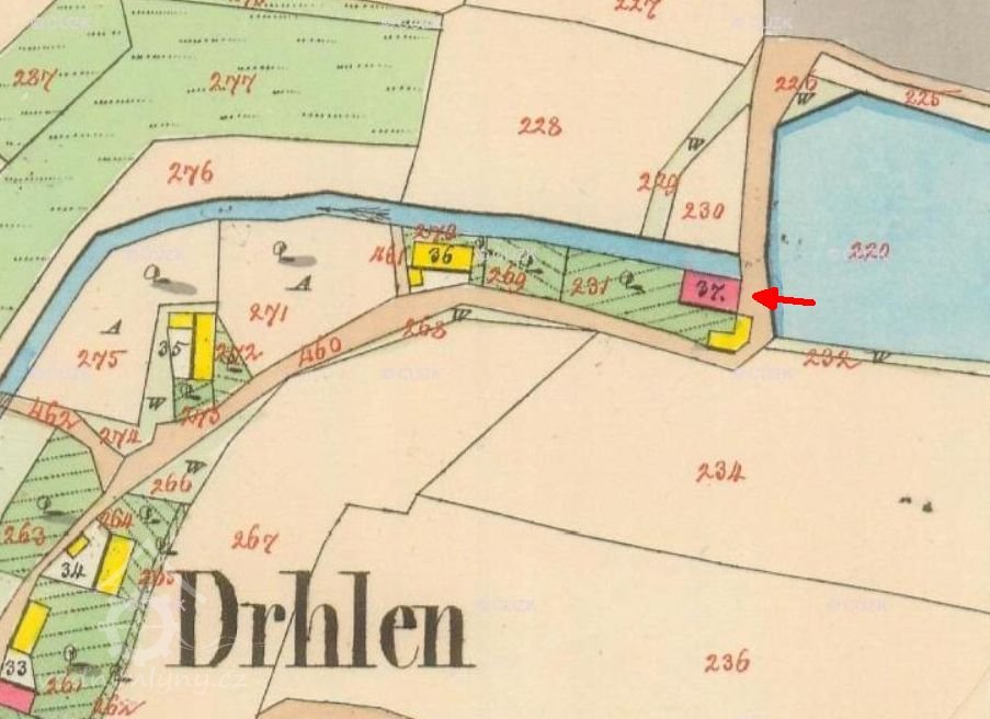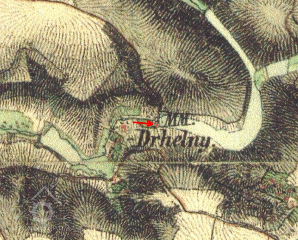 Mlýn stojí pod hrází rybníka Drhleny. Přestavěn na obytný dům.