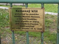 18. 4. 1829 při povodni zahynuli (strženi vodou při vytahování stavidla) syn mlynáře Václav Draždík a mládek Martin Hauzar, oběma bylo 16 let. Jejich těla byla byla nalezena až pod Novým mostem u nynější sokolovny. Na památku na tuto tragédii stojí pod mostem přes Závišínský potok v ulici T. G. Masaryka kamenný kříž (viz ikonografie).