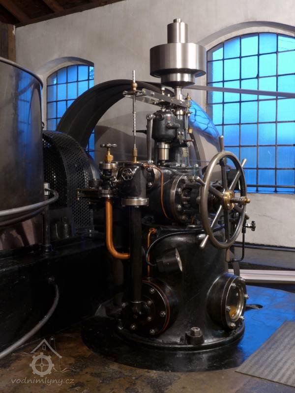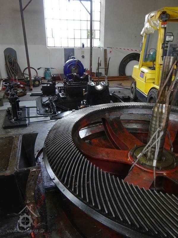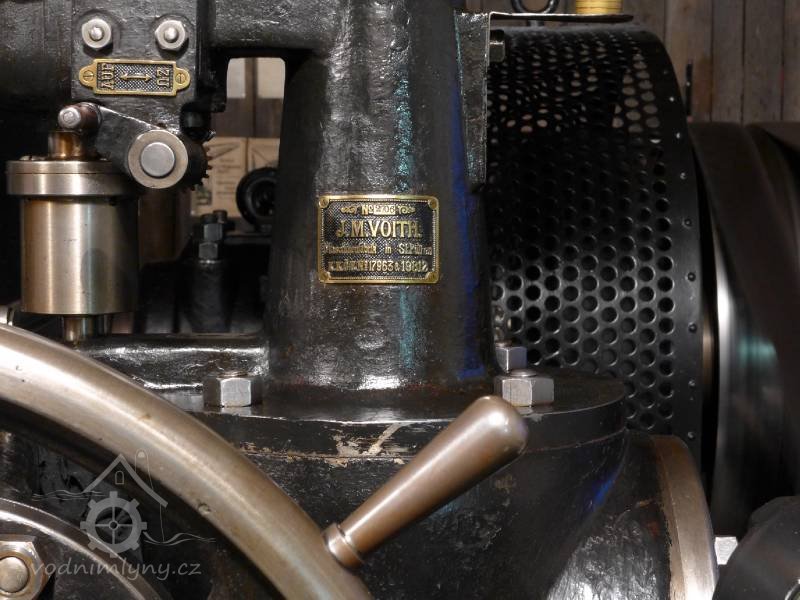 PopisPrvní turbosoustrojí (malá vodní elektrárna I - MVE I) bylo vyrobeno v roce 1914. Turbína byla vyrobena firmou J. M. Voith. Pro přenos síly na pastorek a velkou řemenici je zajišťován rozváděcím palečným kolem s dřevěnými zuby (celkem 720 zubů) z habrového dřeva. Původní řemen pohánějící malou řemenici u generátoru je vyroben z velbloudí srsti.