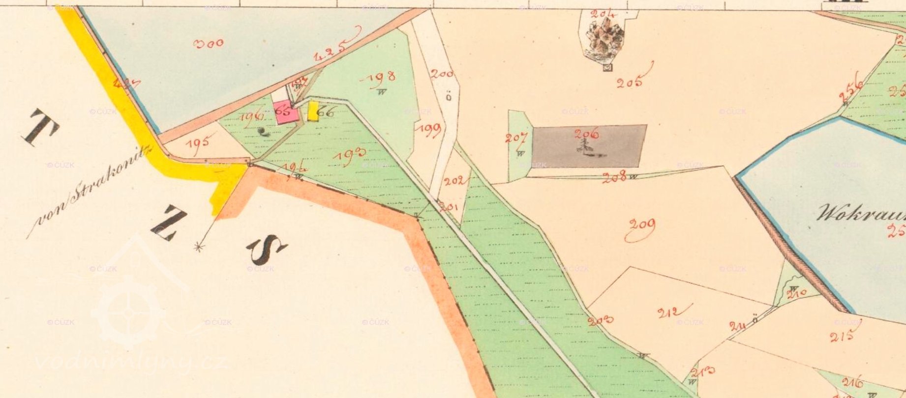 1782 prodán s povolením svobodného pána Josefa hraběte Deyma ze Stříteže při veřejné licitaci mlynáři Václavu Českému