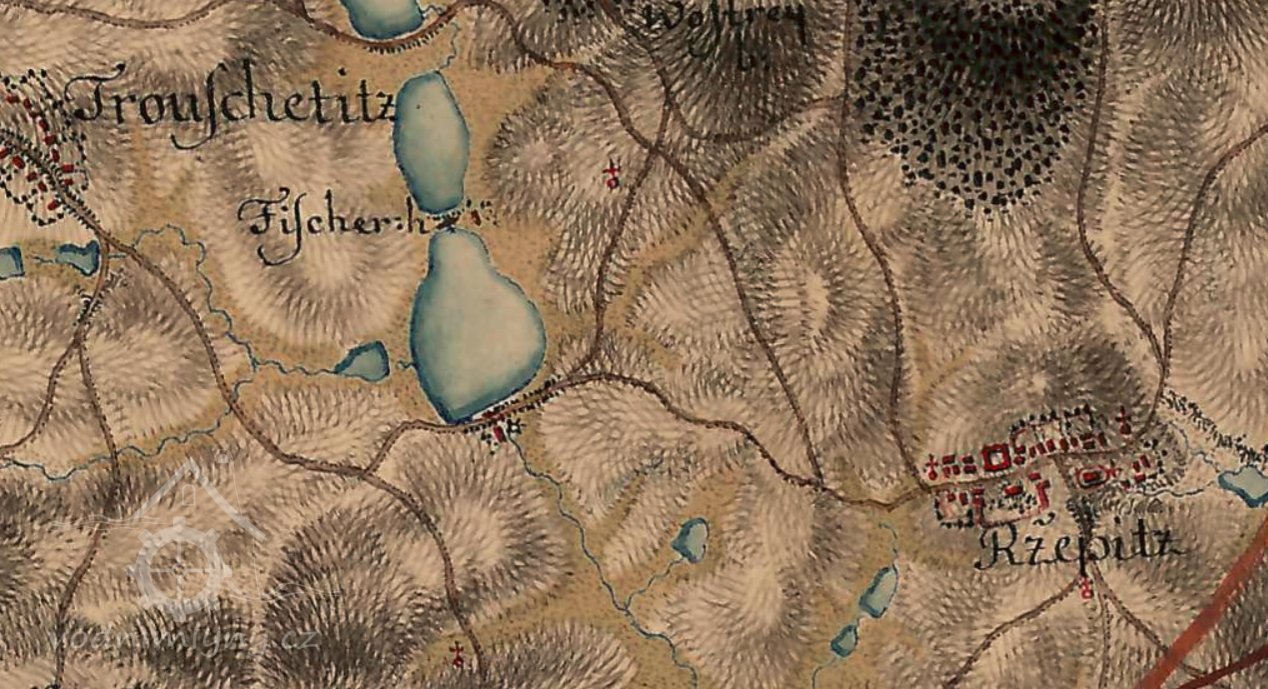 Dolní řepický rybník (10,5 ha) nad mlýnem.