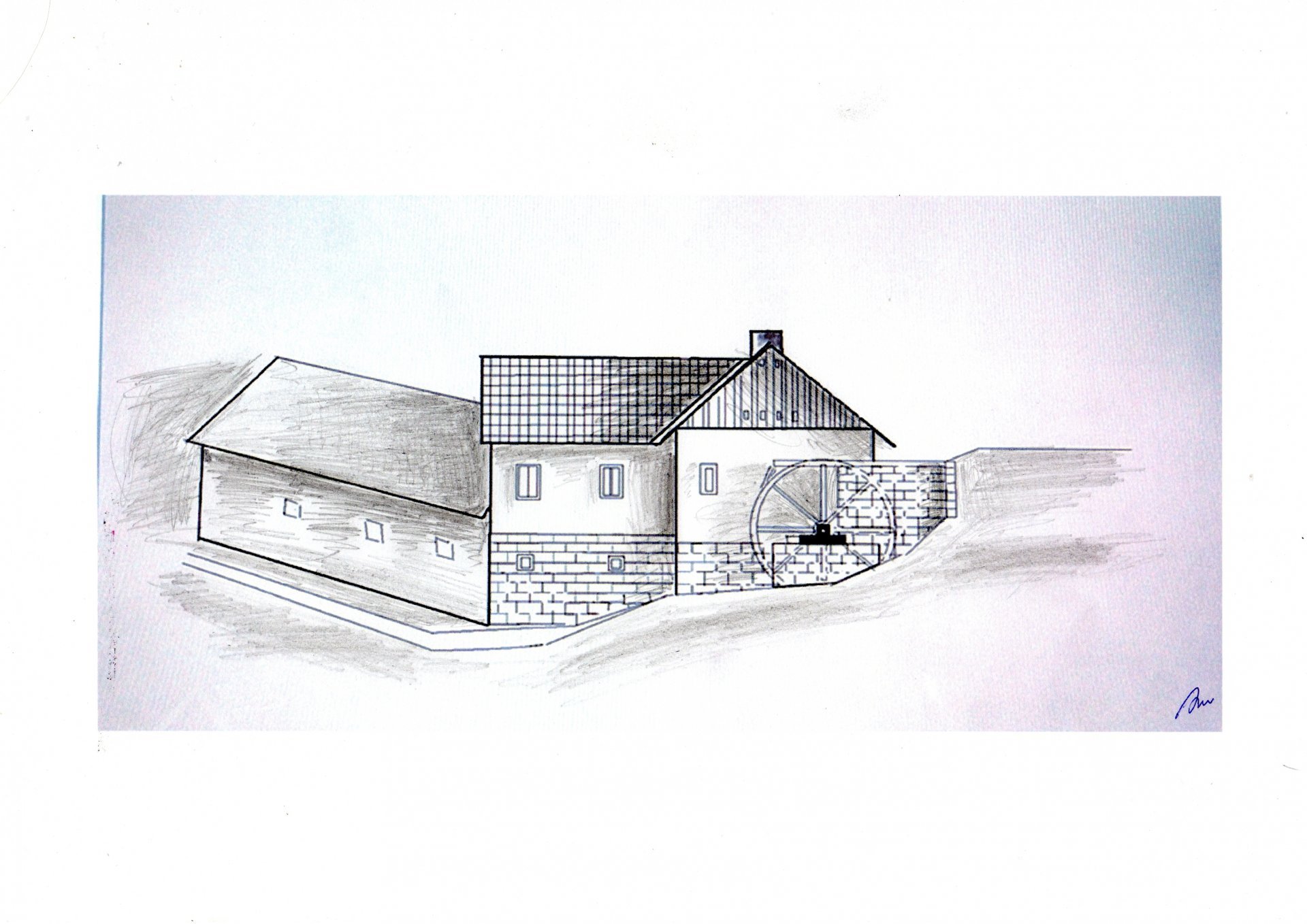 Popis1930:_ 1 kolo na svrchní vodu, hltnost 0,075 m3/s, spád 4,5 m, výkon 2,8 HP