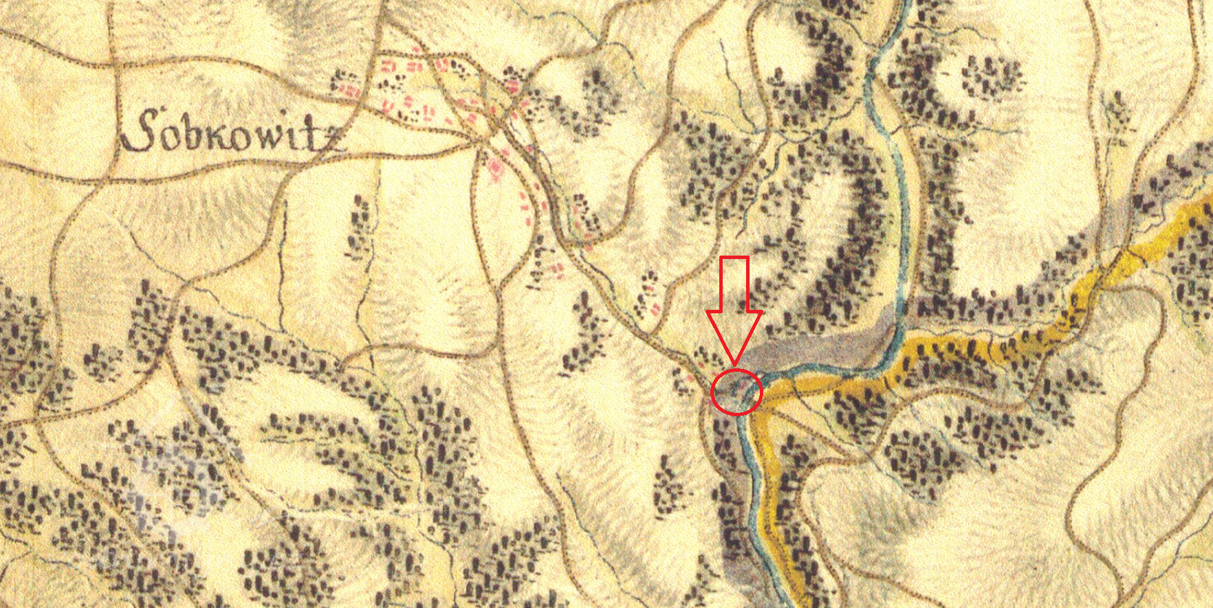 1 km východně od kostela sv. Prokopa v Sobkovicích