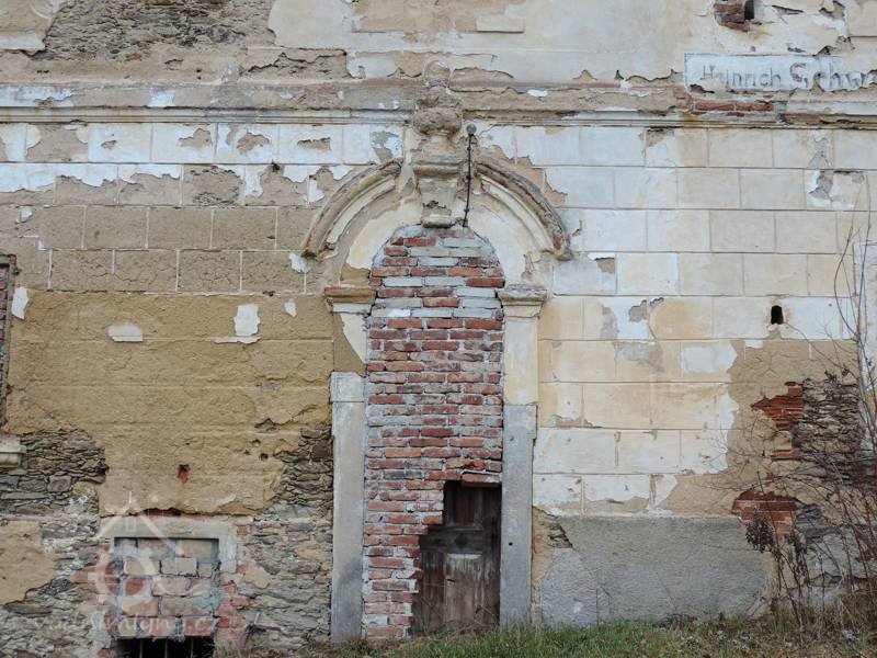 Nad vchodem je uvedeno jméno posledního majitele - Heinricha Schwarze.