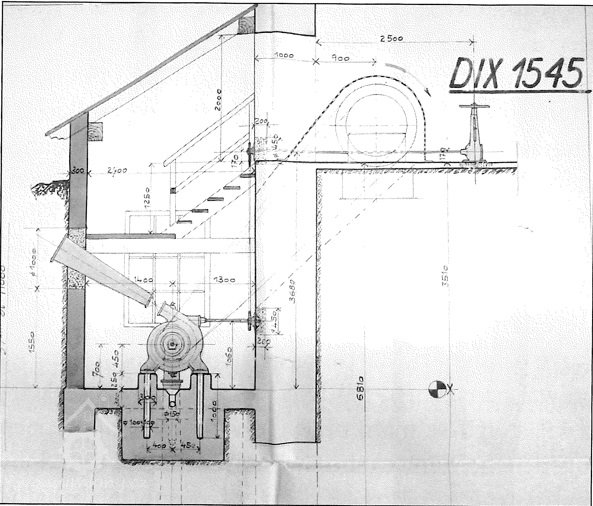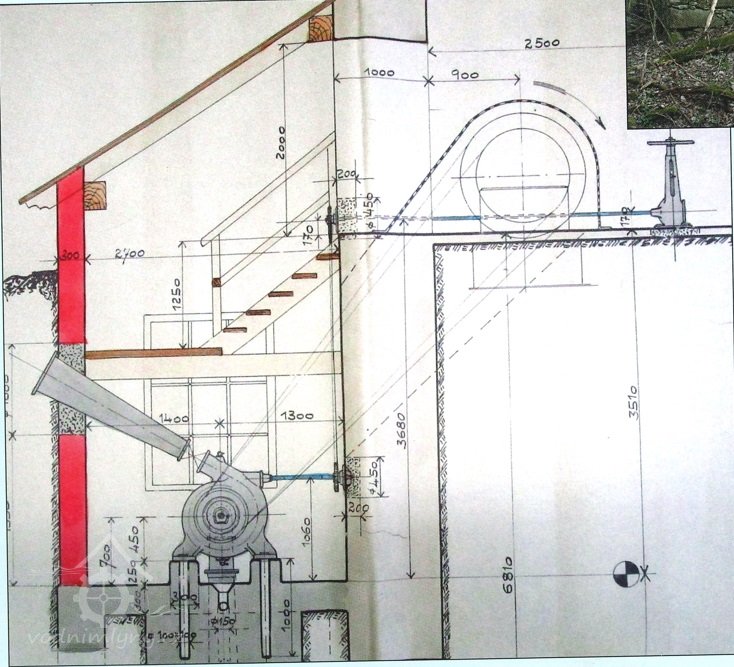 Popis1932 – Francisova spirální turbína o spádu 11 m, hltnosti 70 l/s a výkonu 9 HP.