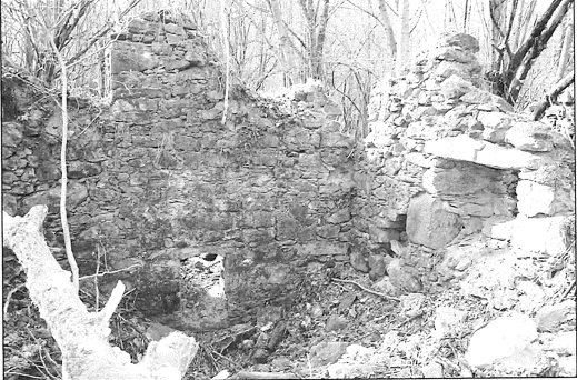 Na leteckém snímku z roku 1958 jsou viditelné již jen obrysy obvodových zdí.