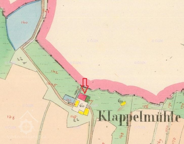 Mlynář musel nad mlýnem vybudovat rybník, zaznamenaný k roku 1713, aby mohl v potůčku zadržet dostatek vody pro pohon mlýna.