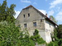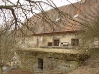 Zděný mlýn leží pod obnoveným rybníkem, jehož výpust má strouhu vysekanou ve skále. Na jejím dně je prosekané obdobné požírací koryto jako na Tuboži. Nad strouhou je vstup do dvou prostor, vysekaných v pískovcovém masivu. První je ve výškové úrovni vstupu, do druhé se sestupuje z první po sedmi schodech. Ve vstupu jsou patrné stopy po zárubních a uzavírání objektu. Jedná se o komoru a níže umístěný sklep, přístupné z protější strany strouhy po dřevěné lávce. Jejich zdánlivě neobvyklé umístění v situaci staveb mlýna je vzhledem k užitému materiálu právě typické, k zahloubení byla využita usedlosti nejbližší pískovcová skála. Způsob práce v lomové stěně i při vysekání objektu odkazuje do pokročilého novověku.