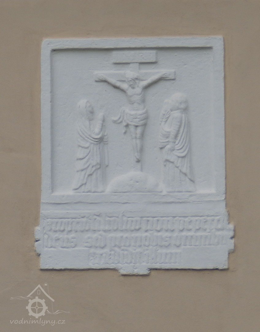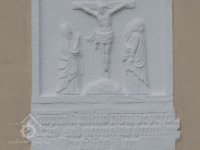 Deska s Kalvárií a latinským citátem mezi okny, 2018, © Doxa