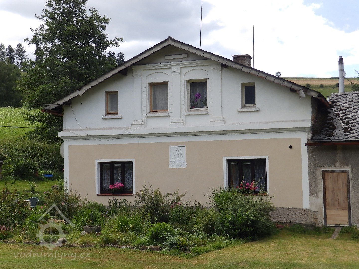 Západní průčelí s lomenicí, 2017, © www.remax-czech.cz, (Prvky na obrázku: skládaný bedněný štít)