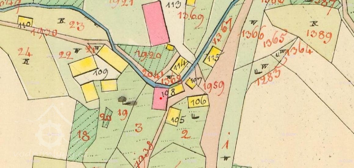 Na pravé boční straně stavení mlýna byla lednice a voda přicházela z nádržky pravděpodobně kolmo na ni., 6.8.2018, © pepino
