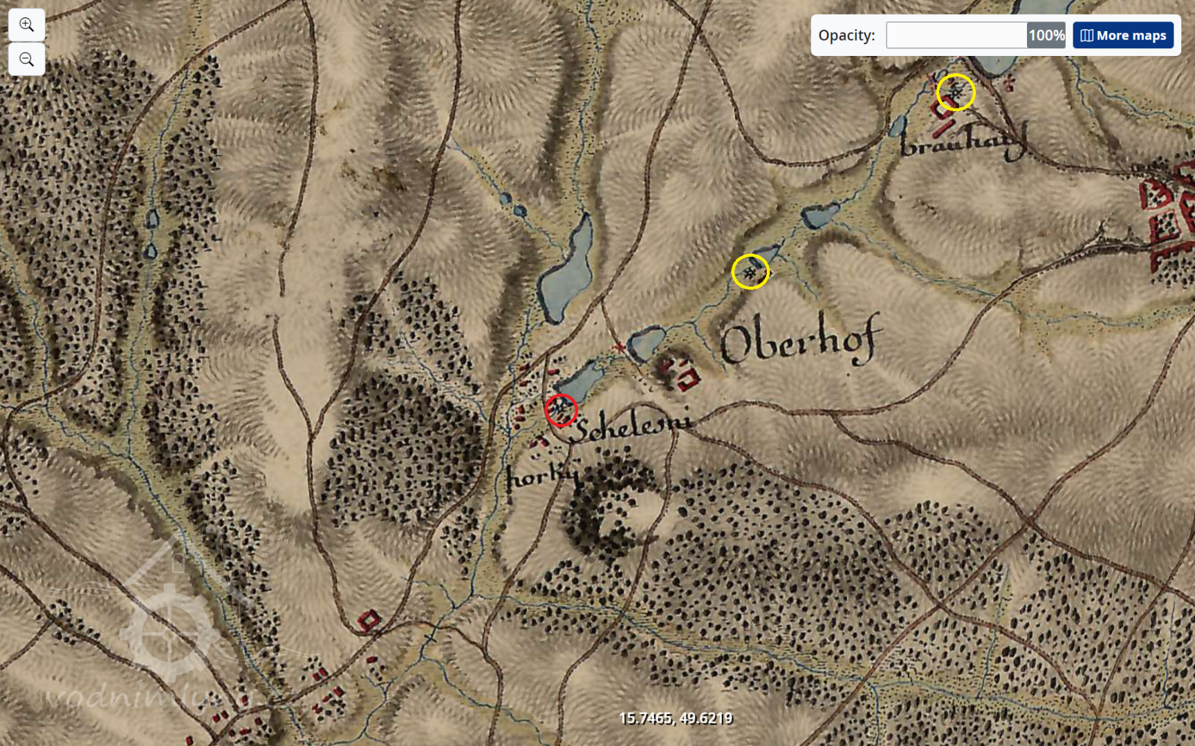 I. vojenské mapování, výřez, 1764-1768, © maps.arcanum.com